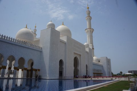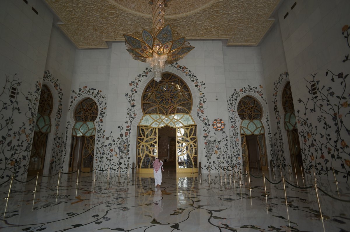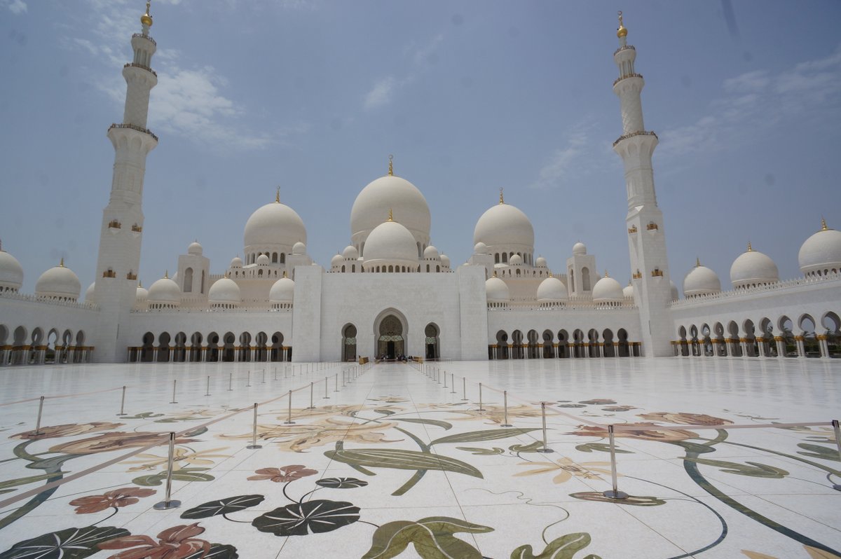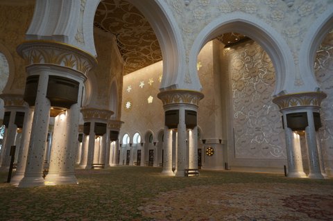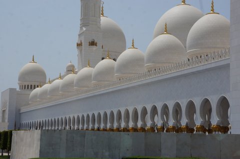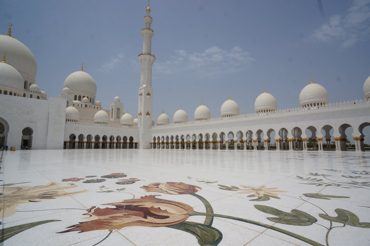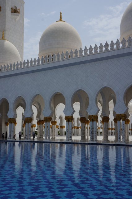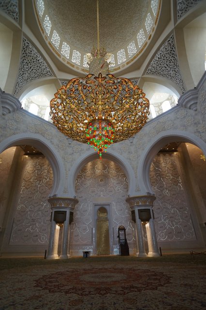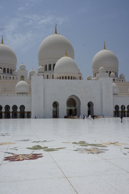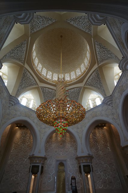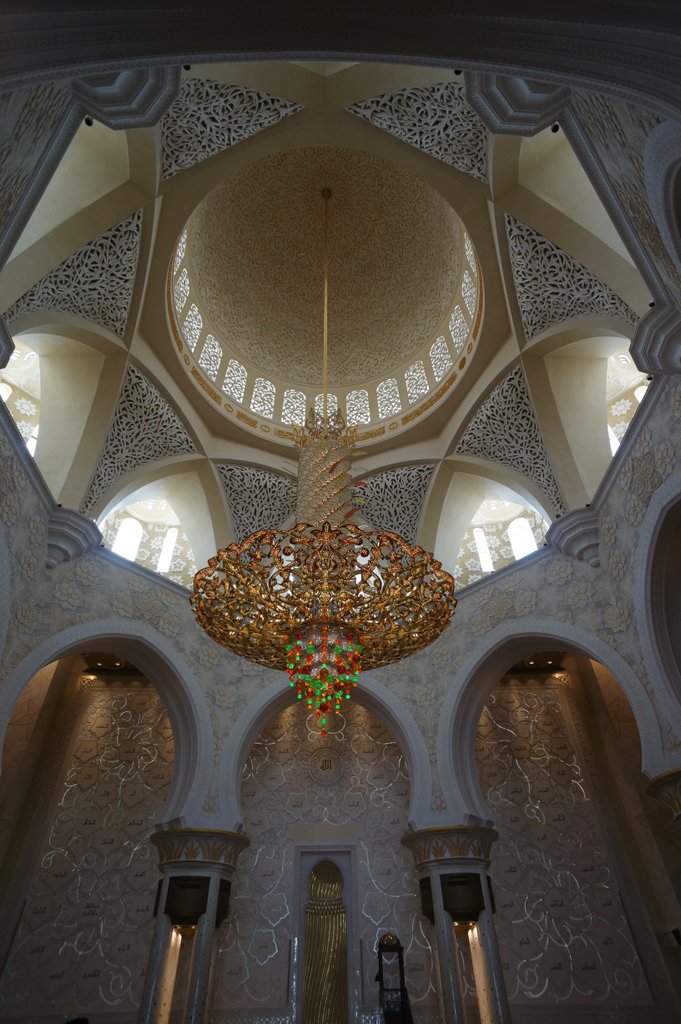 We only had a day in Abu Dhabi. Thankfully we were able to see most of the things that we had hoped to see. The main attraction for us was the Sheikh Zayed Grand Mosque. Ever since the Masjid Negara in Kuala Lumpur we have been looking forward to seeing more mosques and today did not disappoint. Like all Mosques it is designed to create an ambience of peaceful reflection. The craftsmanship in the use of the marble was impressive. Almost the entire building is covered in white marble. The flowers on the floor are not painted on but rather are inlaid pieces of coloured marble, carefully cut and placed into bespoke grooves in the marble flooring.