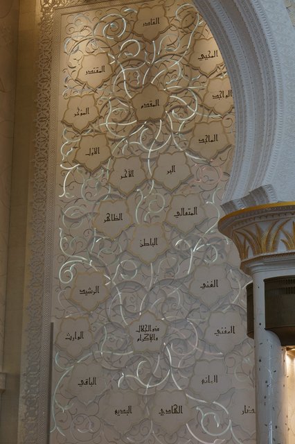 The use of translucent marble, backlit by the sun created some beautiful images. All three of these images have such components incorporated into them that subtlety illuminates the part of the wall. The effect was very beautiful. There is a lot of symbolism in the design of this mosque and I wish I knew more about it.