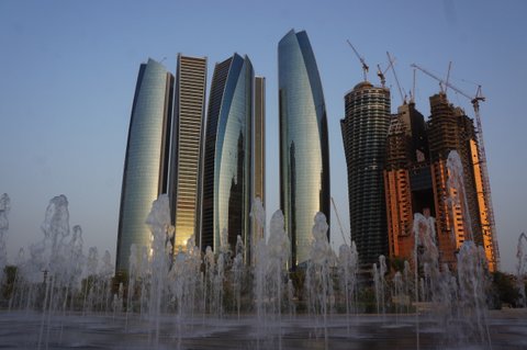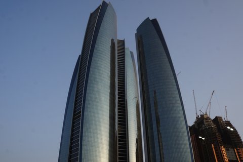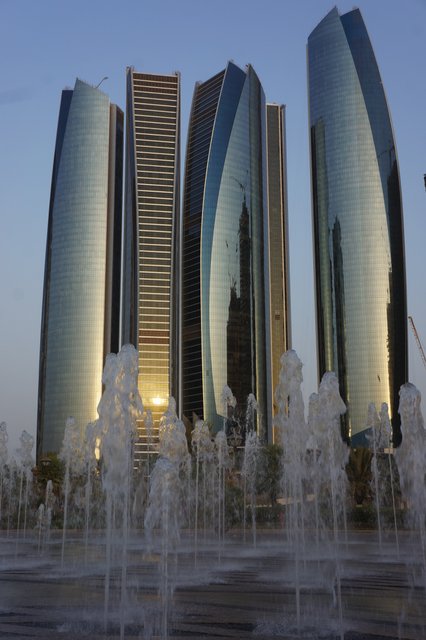 Of all the buildings I saw in Abu Dhabi the Etihad Towers are my favourite. I am not sure if it's their shape, the clean futuristic look of their reflective facade, the fact that there are a few of them or maybe it's the way they seem to leaning in to each other, as if they are sharing a confidence of some kind. My fav.